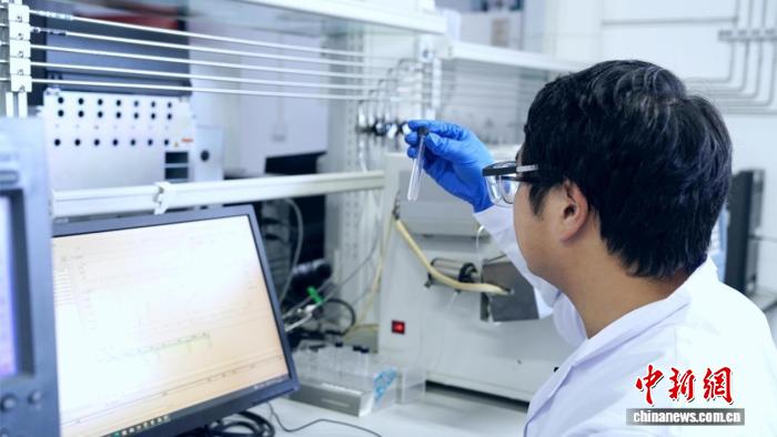 研究人员在气相色谱前检测分析二氧化碳转化为乙烷或乙烯实验结果。中国科学院大连化学物理研究所 供图