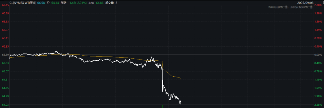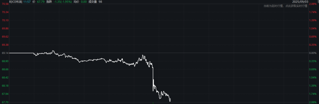 9月3日,国际油价盘中跳水。截至发稿,布油跌近2%,盘中一度跌超2%。