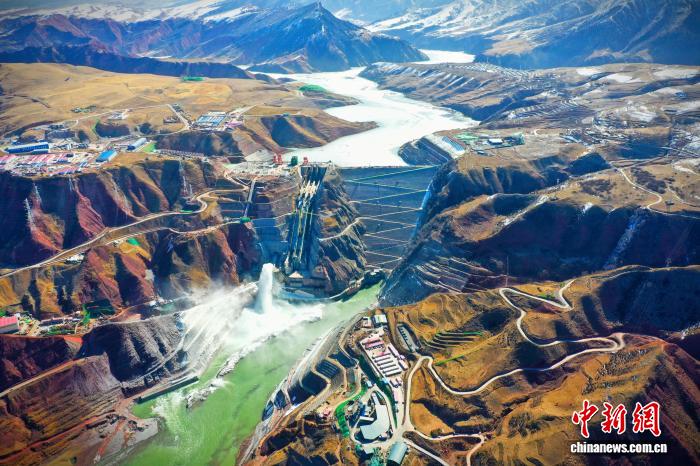 图为2024年4月玛尔挡水电站大坝航拍图。 (玛尔挡水电站供图)