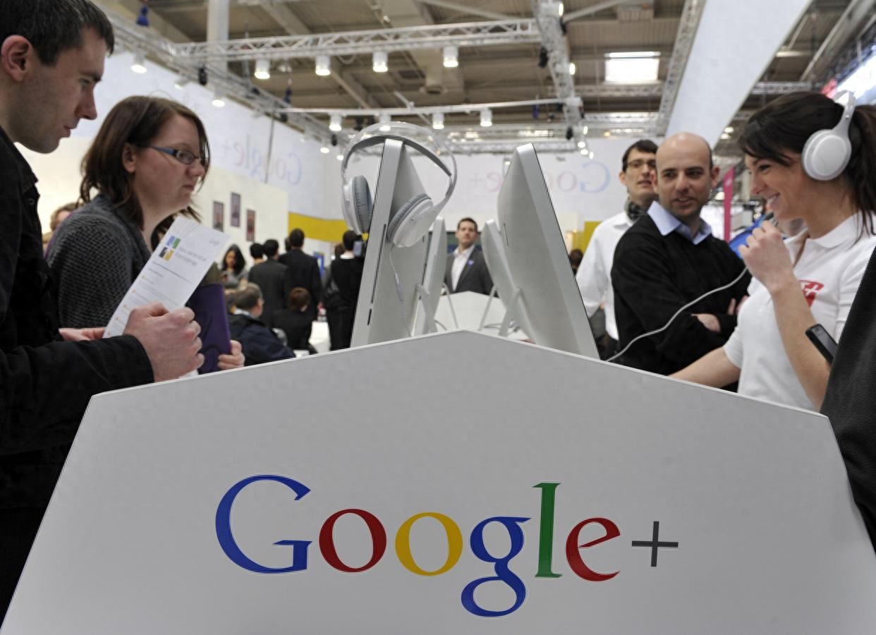 这张资料照片显示,2012年3月6日,在德国汉诺威会展中心举行的汉诺威信息及通信技术博览会上,参观者在谷歌展台参观。新华社记者马宁 摄