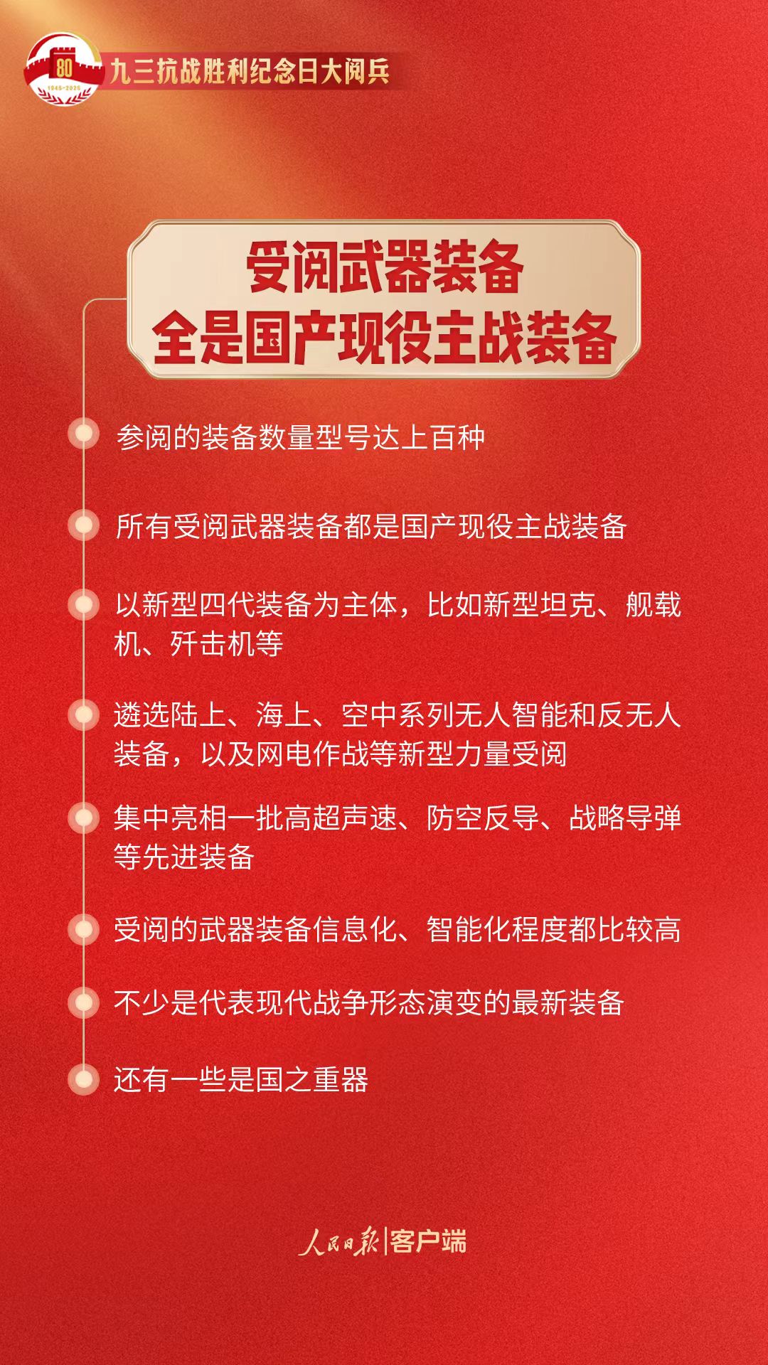今年九三阅兵是纪念中国人民抗日战争暨世界反法西斯战争胜利80周年活动的重要组成部分。我们以盛大阅兵纪念抗战伟大胜利,就是要铭记历史、缅怀先烈、珍爱和平、开创未来。