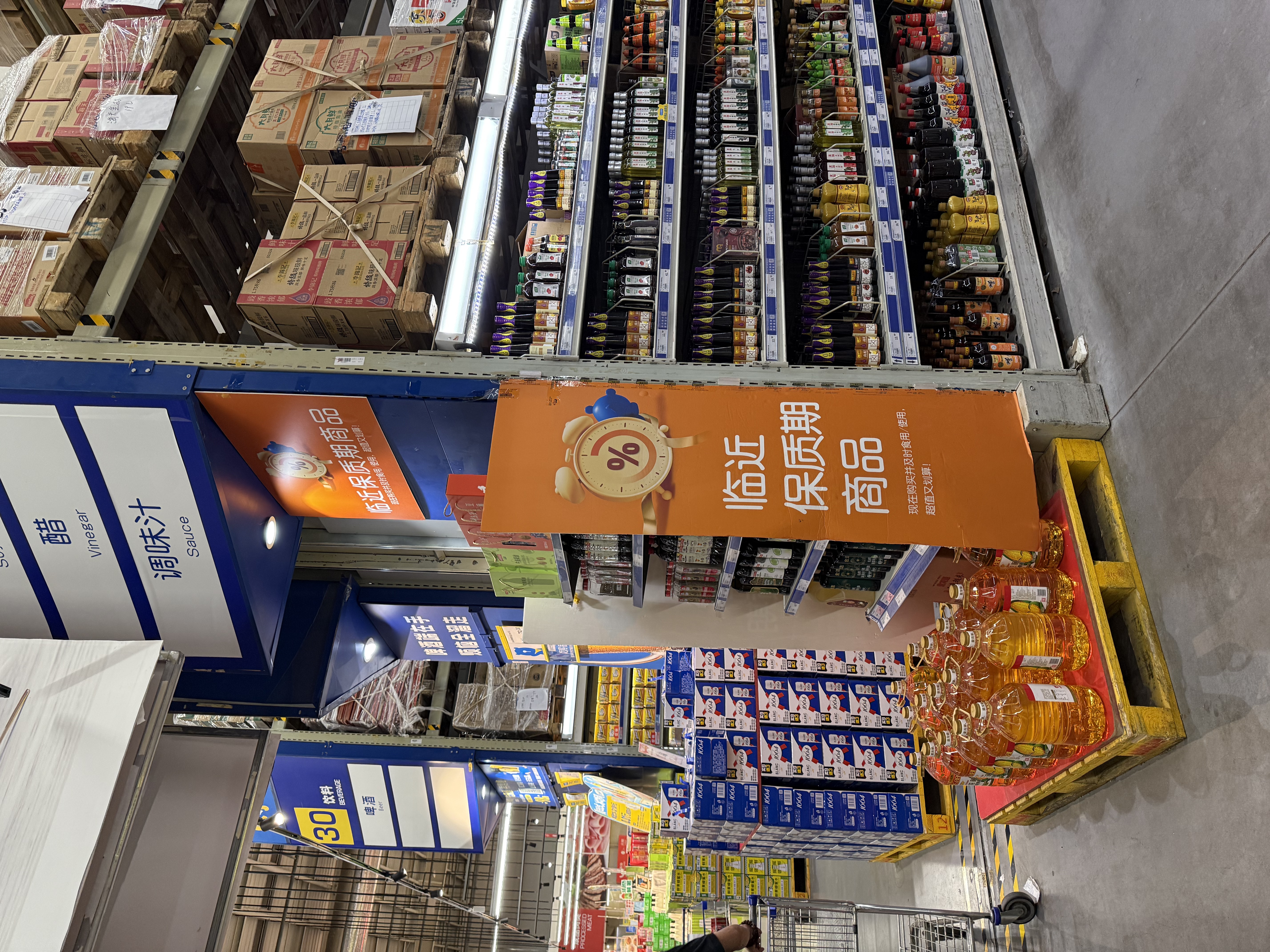 第二家:位于西安市电视塔附近的麦德龙西安雁塔商场。记者在粮油区看到了一个临近保质期商品的专柜,牌子是醒目的橙色,该柜台上有临近保质期的食用油以及其他调味品。后向工作人员询问,了解到生鲜区域也有此类柜台。