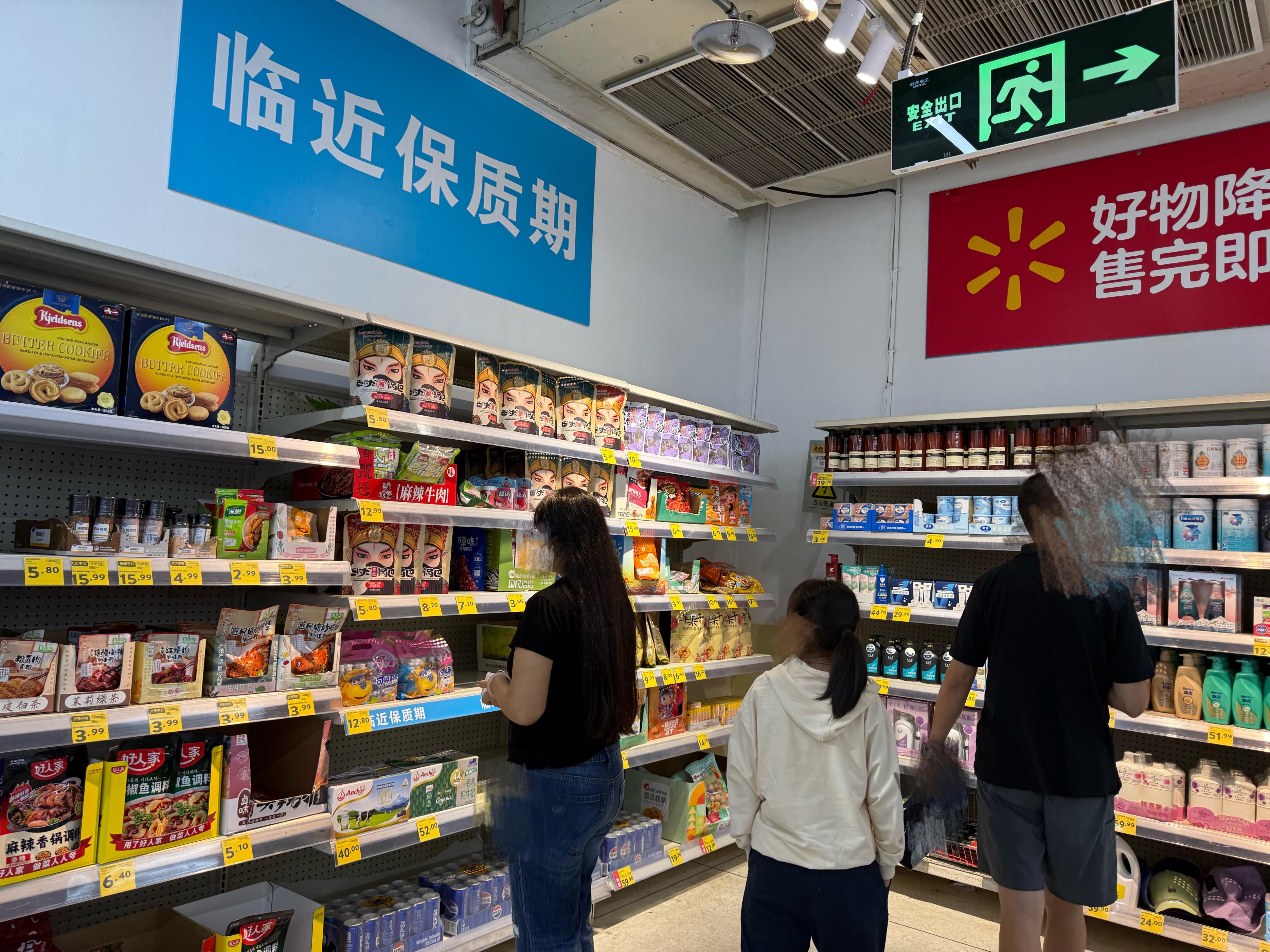 第七家:位于西安市金花南路的沃尔玛立丰国际购物广场店。该店在收银区旁开辟专门区域,“临近保质期”几个大字贴在一堵大白墙上,十分惹眼。走近查看,该区域并非全是临近保质期商品,多数商品的生产日期很新,属于促销商品;只有一个货架标注了临近保质期,具体到每件临期商品,都会贴上醒目的“临近保质期”五个红色的字,对此类商品,打折的力度较大。