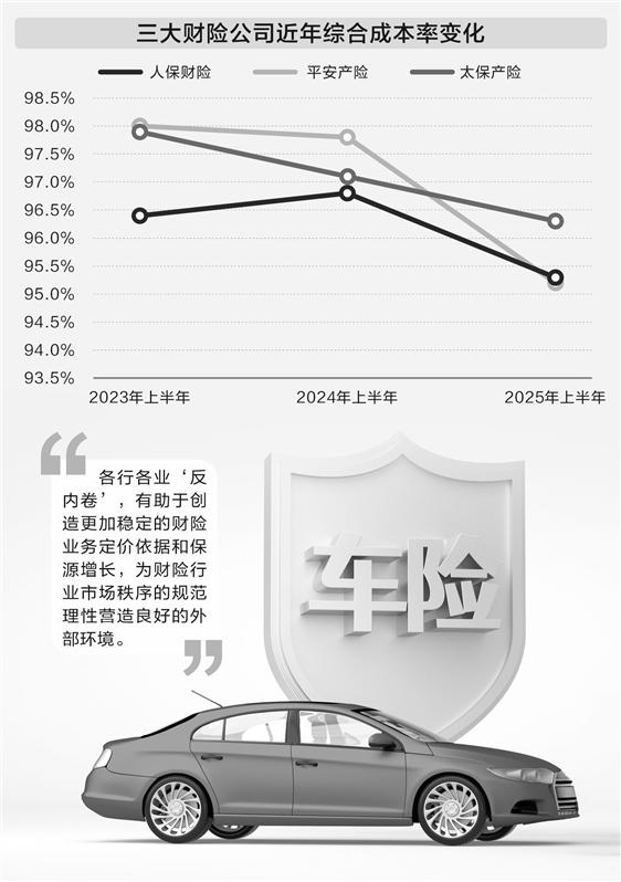 “财险行业‘反内卷’已经取得初步成效。”中国人保副总裁、人保财险总裁于泽在业绩发布会上表示,“报行合一”的实施有力规范了车险市场秩序。上半年,人保财险车险综合成本率94.2%,同比下降2.2个百分点;按旧准则口径,上半年该公司车险费用率较2020年下降18.2个百分点。
