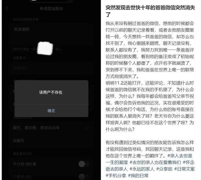另据媒体此前报道,有网友发帖称,其爸爸去世近十年,想爸爸的时候会打开以前的聊天记录或者去看看爸爸的朋友圈,最近却找不到爸爸的微信了。这让网友觉得崩溃,“哭到停不下来,我和爸爸在世界上唯一的联络方式彻底消失了。”