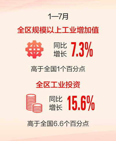 今年,自治区坚持将工业领域重大项目建设作为稳增长的关键抓手,充分发挥协调联动机制聚合效能,持续完善工信领域重点项目库,推动开工项目加速建设、在建项目竣工投产、技改项目落地见效,为工业经济稳增长提供坚实支撑。1—7月,全区工业投资同比增长15.6%,增速高于全国(9%)6.6个百分点,居全国第7位。