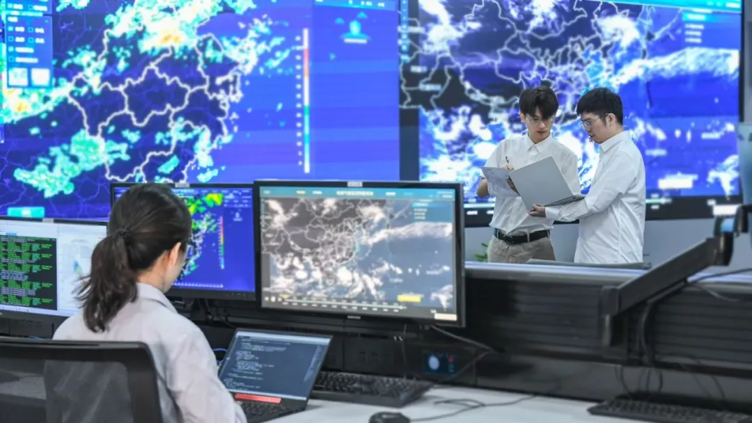 电力气象中心技术人员正在进行台风AI大模型训练。刘广扩/摄
