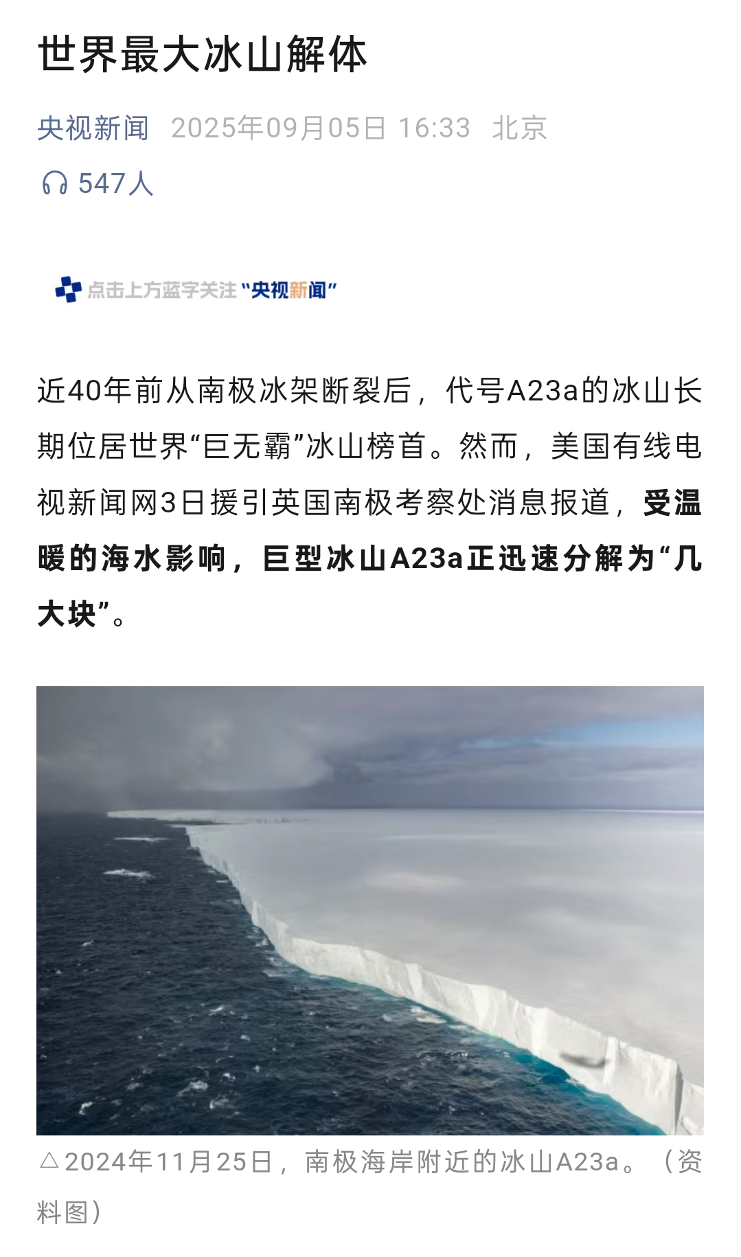 环球同此凉热。全球性热浪也正变得愈加剧烈且频繁。世界最大冰山遭解体。极端高温加剧火灾风险,欧美多地野火肆虐。9月1日,英、日、韩气象机构表明,过去三个月,三国各自经历了有记录以来的“最热夏天”。