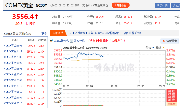 9月2日截止发稿,COMEX黄金为3556.4美元/盎司,日内涨1.15%。刷新每盎司3508.73美元的历史高点,超过了4月份创下的前高点。今年迄今为止,国际金价已累计上涨上逾33%,成为表现最佳的大宗商品之一。