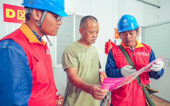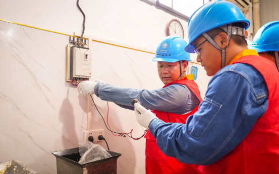 图为濉溪县供电公司党员服务队正在帮助店主检查用电安全隐患。储运涛摄。