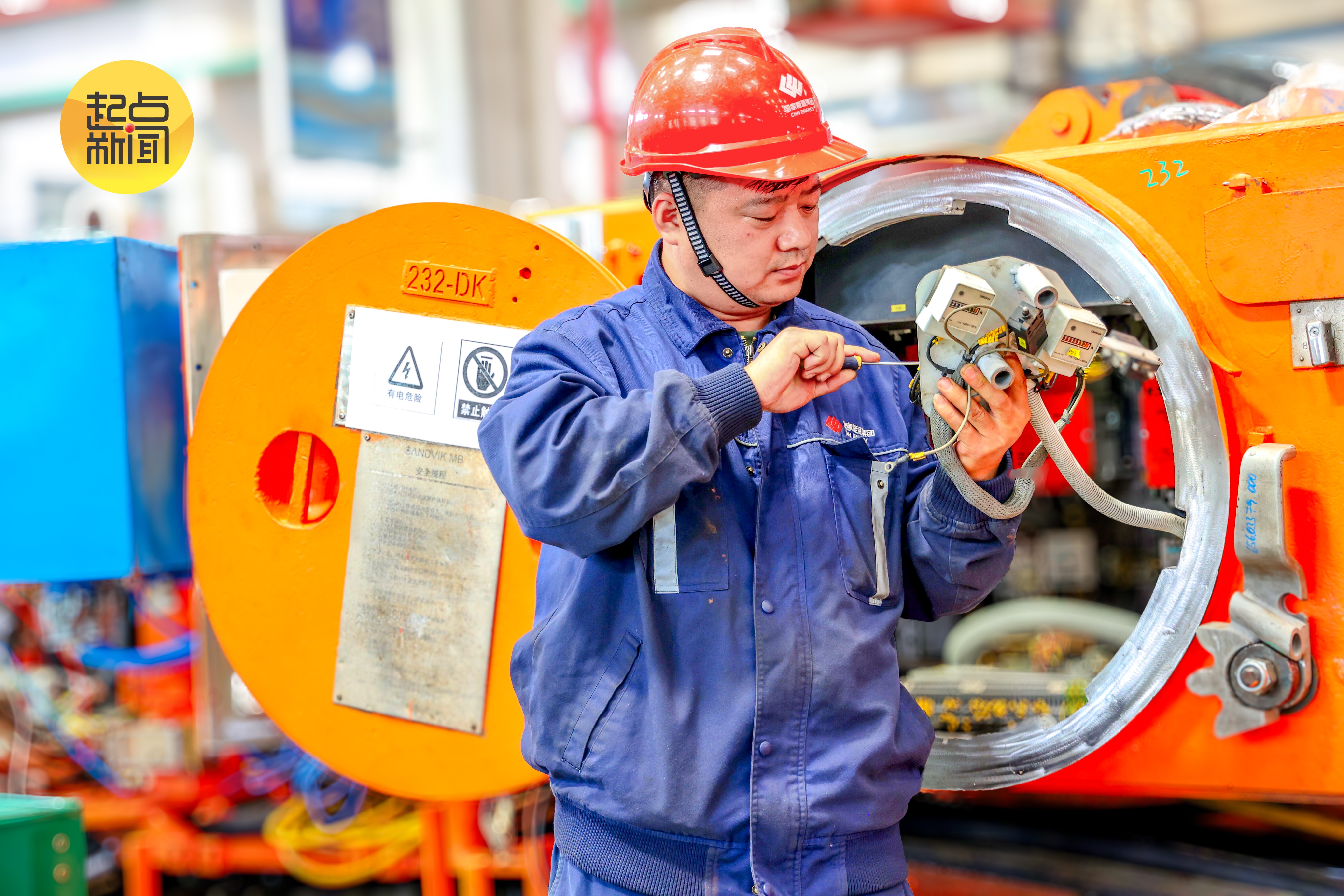 图4:国能工匠(集团级首席师)、神东设备维修中心维修一厂维修一部电工班电工刘俊彦正在检修掘锚机电控箱。