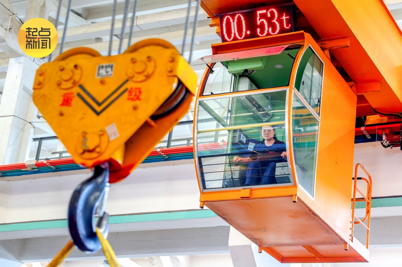 图3:神东设备维修中心维修一厂维修一部起重工李静正在专注吊装设备部件。