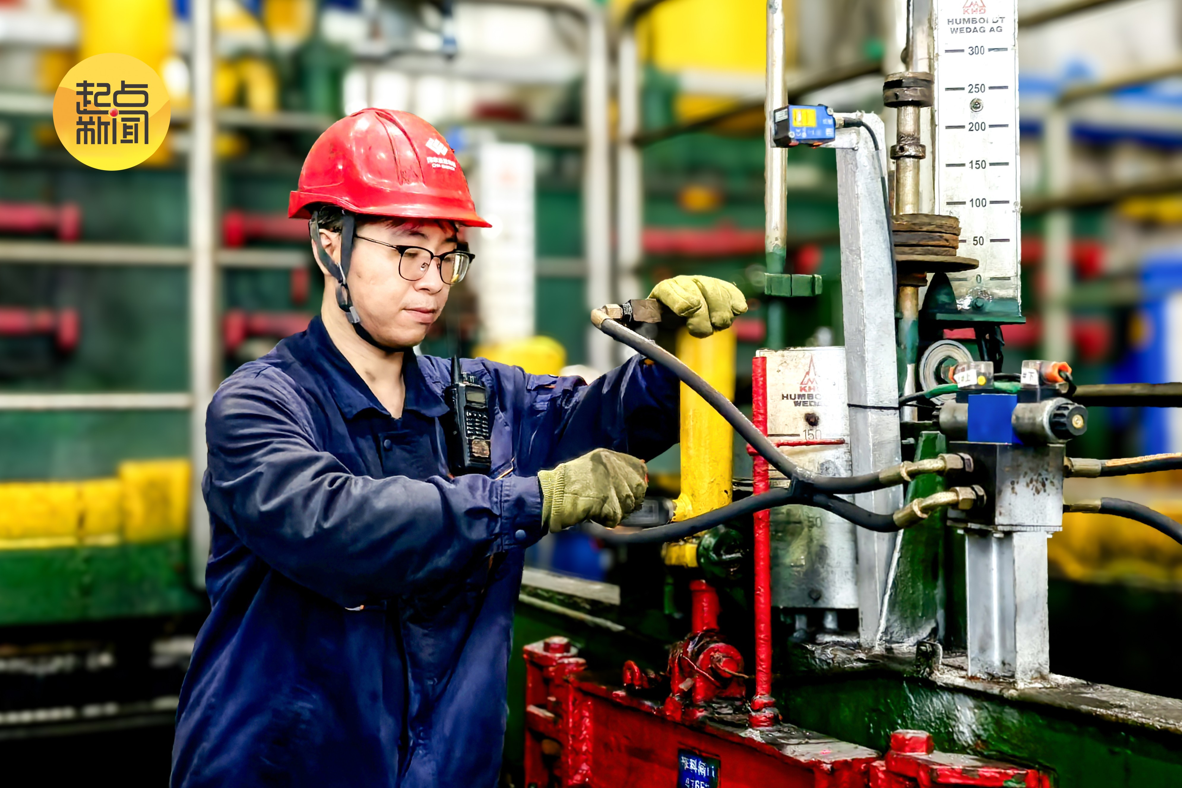 图7:在神东洗选中心大柳塔选煤厂跳汰车间,岗位工武威正在检查跳汰机床层闸门的输油管,保障跳汰机的正常运行,助力全厂实现高效、优质的生产目标。