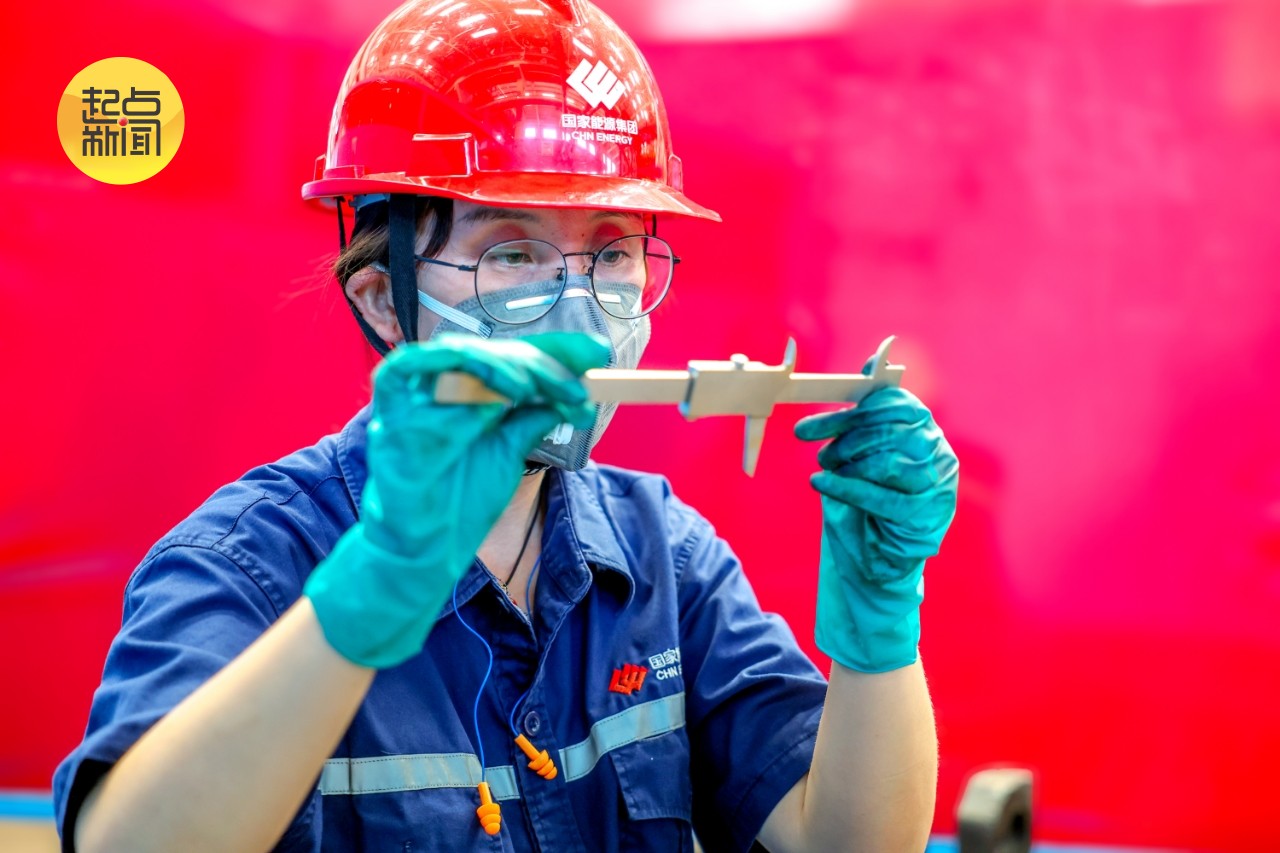 图1:神东设备维修中心维修一厂维修一部检测修复班检测人员杨静正在用游标卡尺测量修复后配件。
