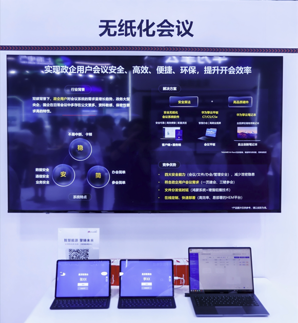 为此,华为擎云携手合作伙伴,基于华为擎云商用平板电脑打造擎云智慧能源-无纸化会议方案,重构企业会议全流程,提供“绿色、安全、高效”的会议管理新范式,成为破解传统办会难题、助力企业高质量发展的关键支撑。