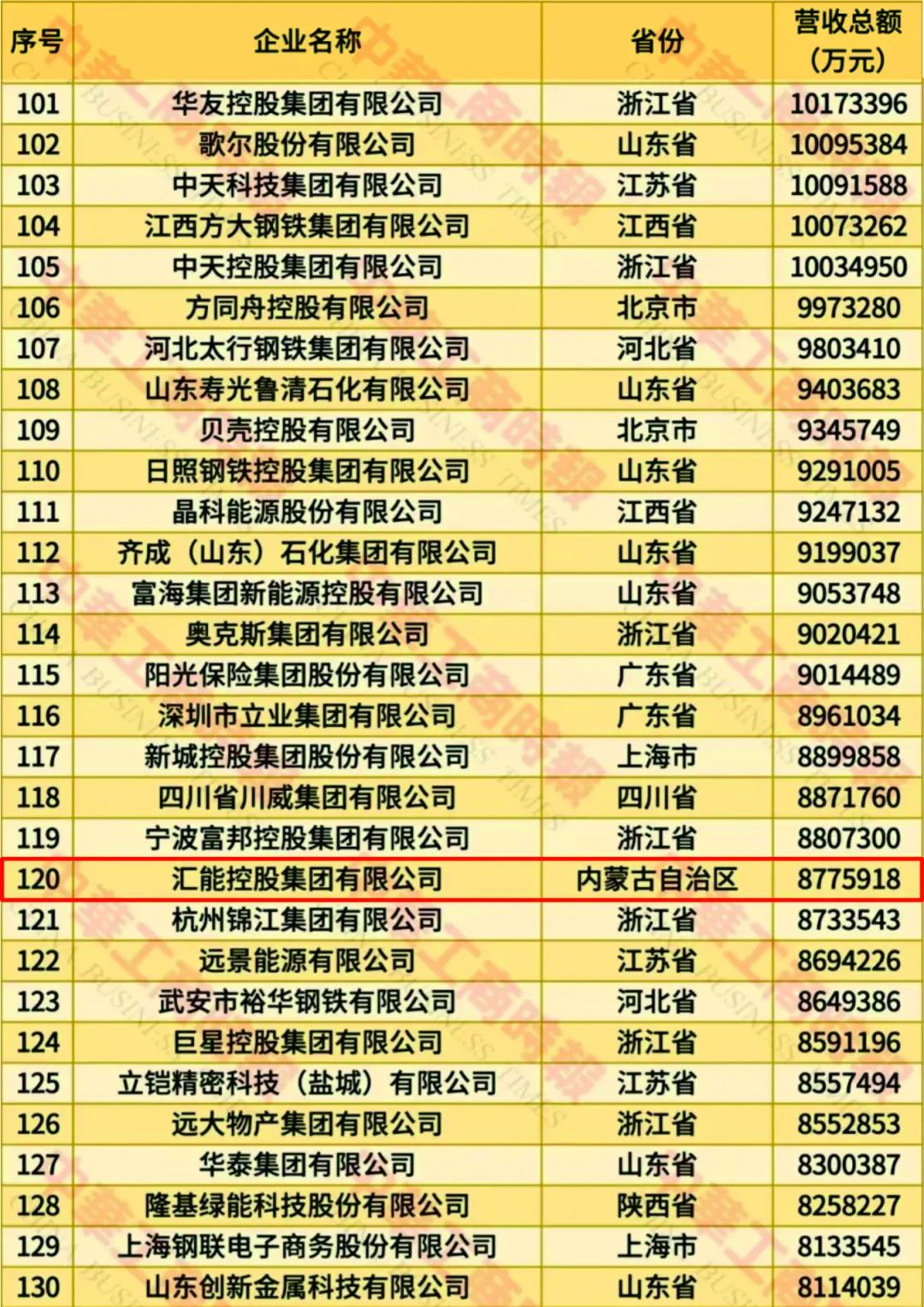 8月28日,由全国工商联、辽宁省人民政府共同主办的2025中国民营企业500强发布会暨全国优强民企助力辽宁全面振兴新突破大会在沈阳召开,大会上发布了“2025中国民营企业500强”榜单,汇能控股集团以877.57亿元营业收入位列榜单第120位,较2024年195位上升75位。