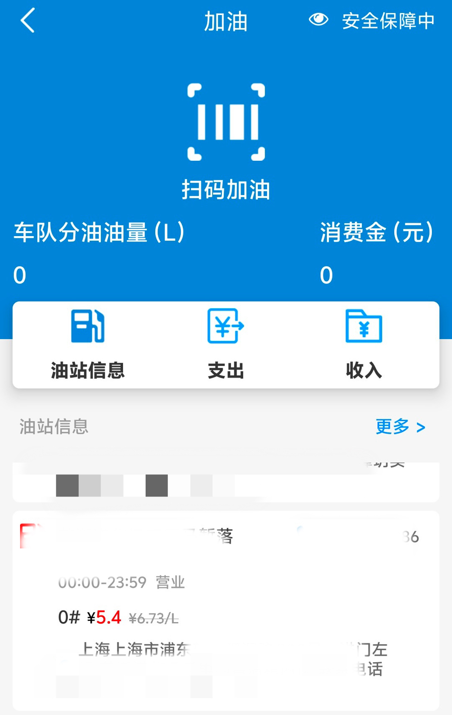 赵师傅摇摇头,像他们这样的个体司机,没有注册公司,开不了票。这意味着,司机利用平台接到的线上订单,在结算时,只能被迫让收入的30%直接划扣留在平台,作为加油账户的“预充值”。平台专门开发的加油软件显示了一个扫二维码加油的功能,提示车队分油油量和对应的消费金额。
