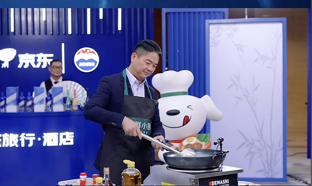 品酒会直播烹饪,可以说是刘强东时隔近20年重启“用户见面会”的一个彩蛋。当被主持人问及直播首秀厨艺紧不紧张,刘强东打趣道:“和贾国龙第一次炒菜,罗永浩第一次说脱口秀一样紧张。”