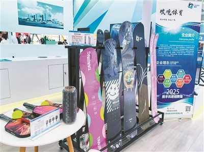 在第七届中国国际新材料产业博览会黑龙江展区的黑龙江碳境复合材料有限公司展台前,不少参观者拿起展台上的滑雪板反复掂量,纷纷发出疑问:“这滑雪板看着很结实,怎么这么轻?”黑龙江碳境复合材料有限公司负责人于新龙笑着解释道:“这款滑雪板由T700级碳纤维制成,相比传统材质滑雪板重量减轻了30%,抗冲击性能却提升了400%。用它做空中转体、急停等高难度动作,既可减少运动者身体负担,又能降低板体断裂的风险。”