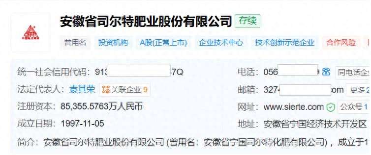 天眼查显示,司尔特成立于1997年11月份,位于安徽省宣城市代管县级市宁国市,2011年1月在深交所主板上市,主要从事肥料的研发、生产和销售,磷矿石的开采和销售,马尾山硫铁矿的开采和销售。财报称,公司“是安徽省最大的磷复肥生产和出口基地之一”。