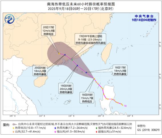 另外,受南海热带低压系统影响,预计,18日至21日,南海东北部海域有6~7级、阵风8级大风,部分海域风力可达8~9级、阵风10~11级。福建东南部、广东大部、广西东部、海南岛大部有大到暴雨,部分地区有大暴雨,局地特大暴雨。请公众及时关注热带系统最新动向,提前做好风雨防御措施。