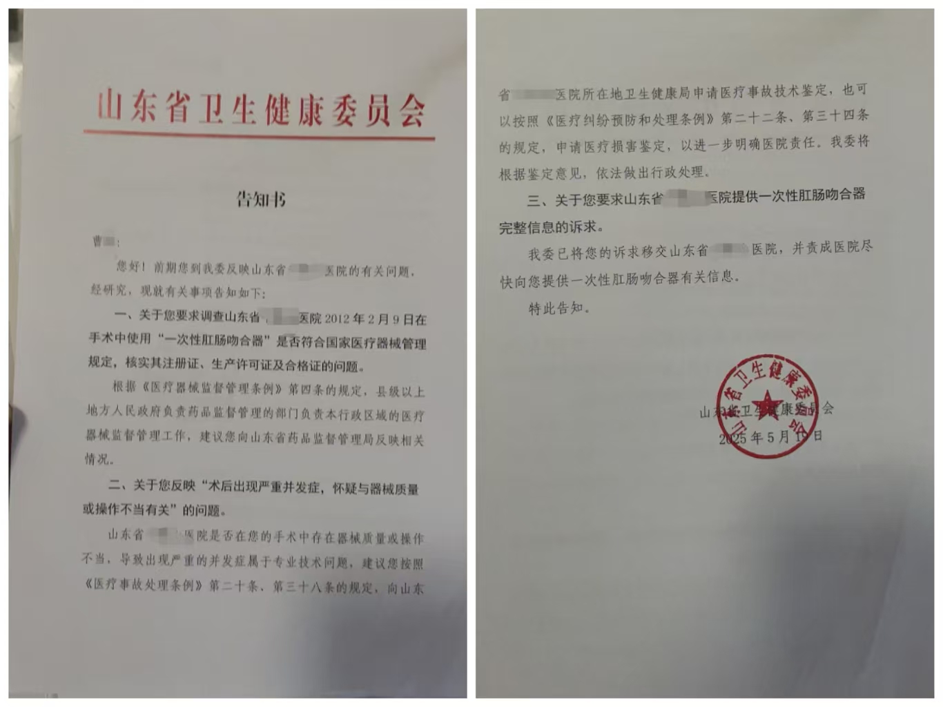 “我这才上网查询得知当初的手术是PPH手术,也知道了我这些年来痛苦的根源。”曹女士说,她加入了一些PPH后遗症互助群,有病友提供信息找到可取钉的医生,2024年先后多次共取出21颗钛钉,但仍有钛钉无法取出。身体的痛苦仍在持续中。这次小小的痔疮手术非但让她十多年来承受了无法承受的病痛,更导致她的子宫及附件被切除,因长期用药导致各器官受损,2018年至今门诊150余次、住院20多次,2022年至2024年经历4次大手术,至今仍无法正常大小便,需靠药物及灌肠维持。