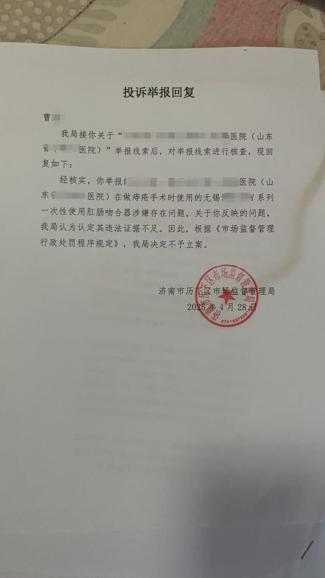 而据沈阳刘女士介绍,她也曾找到医院,但投了信件后杳无音讯。当地卫健委回应称他们级别比医院低管不了,之后刘女士将此事向上级反映,目前尚无反馈。