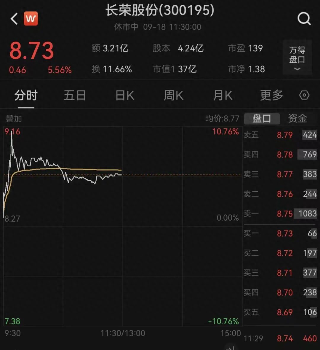 二级市场上,截至9月18日午间收盘,长荣股份股价大涨5.56%。