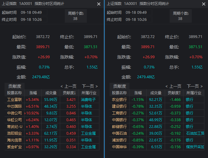 实际上,早盘银行、证券少跌一点点,3900点都可能已短暂突破了。