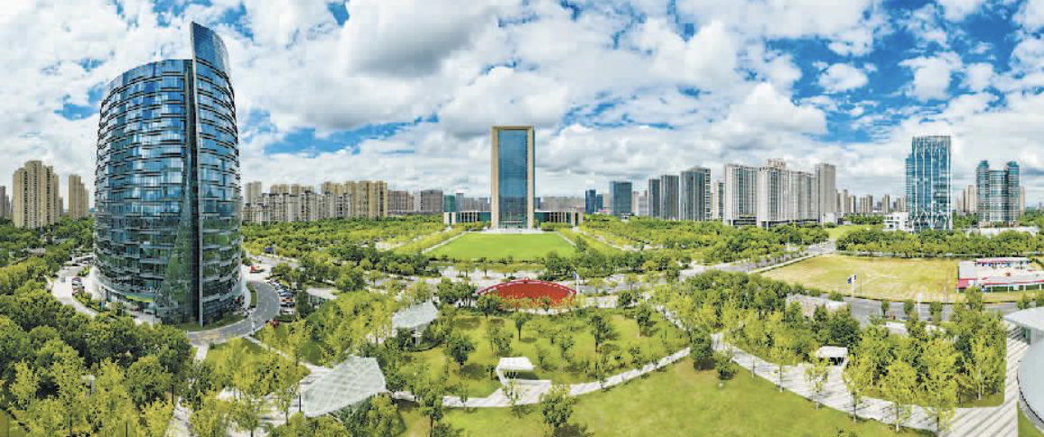 图为南通经济技术开发区能达商务区全景。开发区秉持绿色发展理念,不断推动减污降碳协同增效,推进构建人与自然和谐共生的发展格局。钱咸华/摄