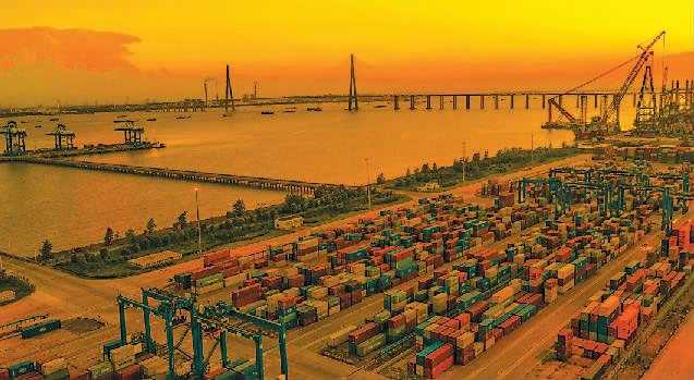 夕阳鎏金,洒满繁忙的南通经济技术开发区通海港区。开发区正不断注入绿色新动能,谱写减污降碳的生态诗篇。钱咸华/摄