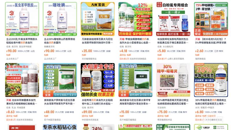 线上销售的农药产品(央广网发来源:电商平台检索页面截图)