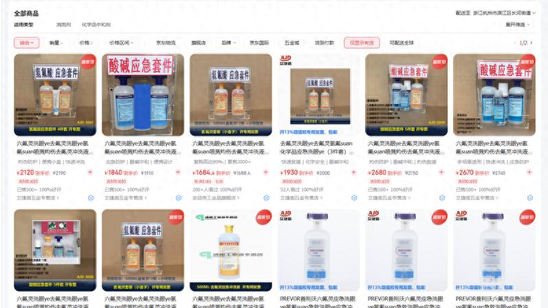 但根据消费者的反映,此前一天,多家电商平台还可以随意下单买到氢氟酸溶液及相关产品。据中央广播电视总台中国之声《新闻纵横》报道,9月16日下午,在网购平台搜索相关氢氟酸试剂产品时,页面曾出现多家在售的标准溶液,浓度从0.5%~40%不等,少则以100ml为单位按瓶售卖、多则能拍25kg一桶,有商品销售数量过万件。