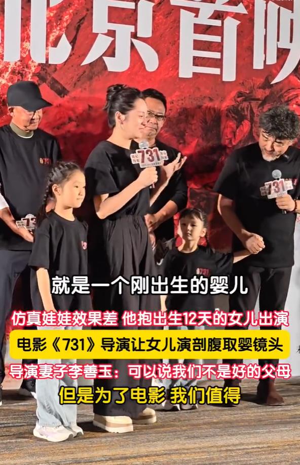 9月18日,北京。在电影《731》北京首映礼上,导演赵林山的妻子李善玉讲述他抱刚出生12天的女儿出演。李善玉说:拍电影一天现场1000人开工,如果他不抱孩子去,这一天怎么办?可以说我们不是好的父母,但是为了电影,我们值得。(北京时间)