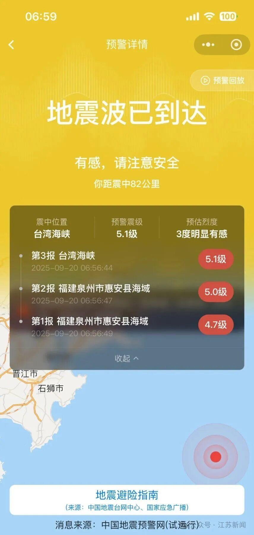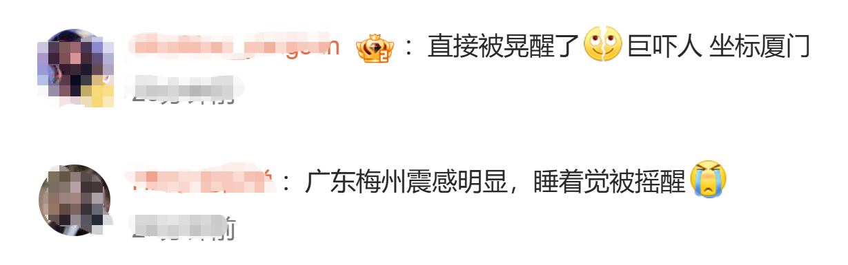 福建厦门、泉州、福州等多地居民反映强烈震感,浙江梅州、广东揭阳等沿海城市亦有轻微震感报告。