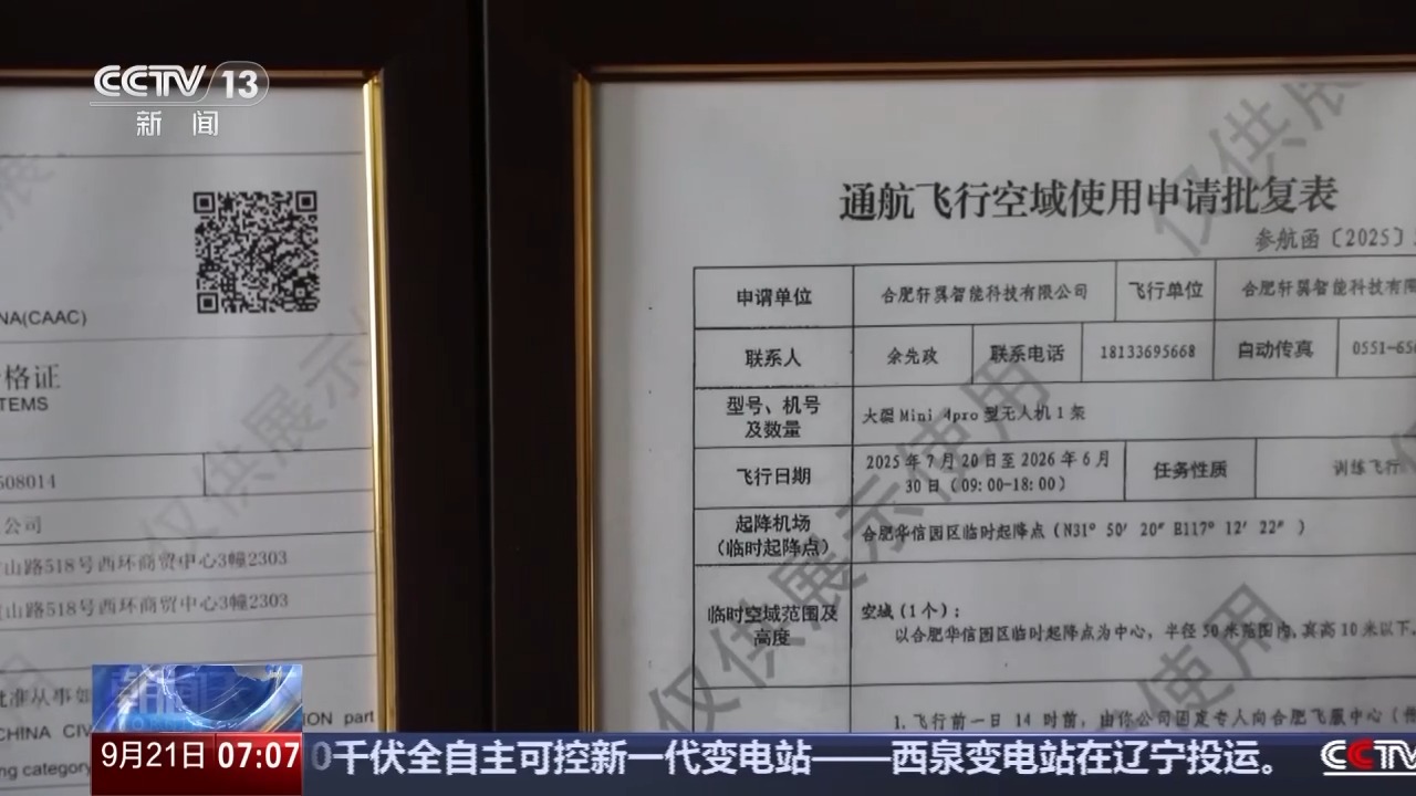 合肥轩翼无人机驾培工作人员李子逸:飞行服务站引导我们去平台上面办理像航空器的运营合格证,还有企业资质、空域申请,大概用了一个月。有他们的指导,我们企业才会迅速地发展起来。