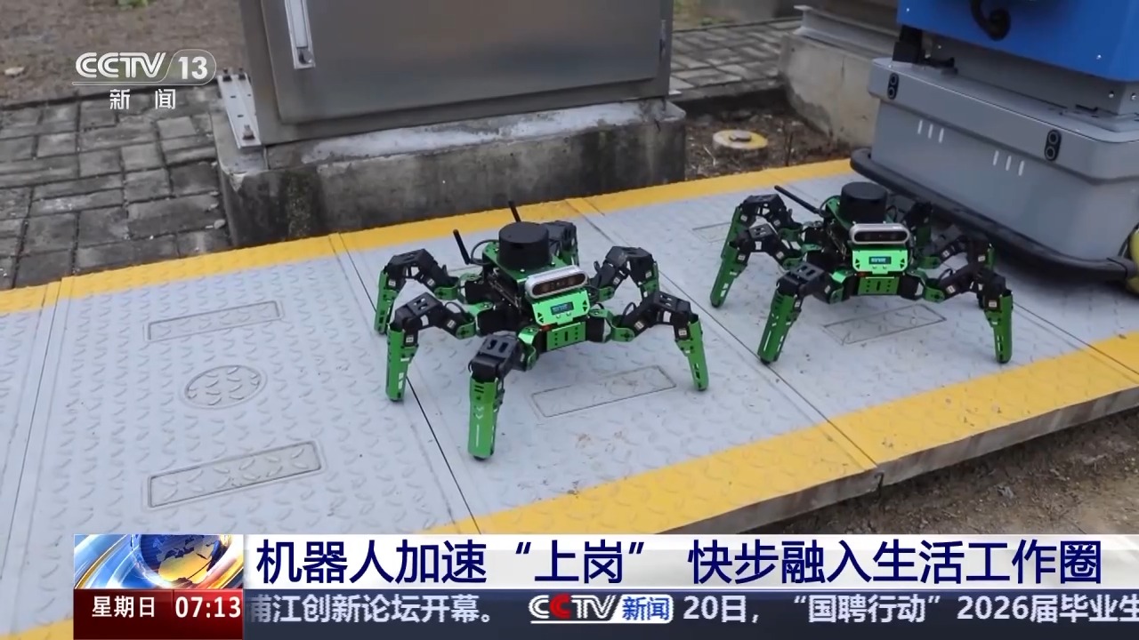 总台央视记者古峻岭:工业机器人可以在极端天气或是有害气体弥漫的危险场景中替代人工来进行巡检作业。和上一代产品相比,它不仅能够完成巡检任务,还能够进行检修作业,人工巡检所需要完成的插、拔、拧、扭、推等动作它全都能完成。它可以根据需要搭载多个这样的6组小型机器人,它们各有分工,大机器人主要在地面完成作业。它们还可以根据需要搭载温度、湿度、气体监测等传感器,依托背后强大的大模型来完成智能巡检,巡检效率和人工相比提升了10倍以上。