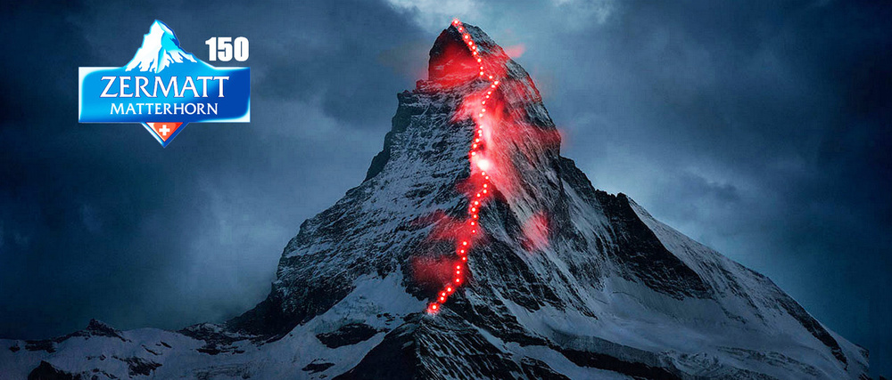 为了纪念人类这一伟大的史诗级征服,瑞士户外品牌MAMMUT猛犸象携手采尔马特市政当局,举行了“灯光下的霍里格雅特”纪念活动,派出多名登山家组成登山队与策马特的高山向导们一道,沿着阿尔卑斯山山脊,摆放了数十个头灯,组成一条明亮的火红光链,宛如一条红色巨龙,来表达他们对爱德华·温珀带领攀登队实现首攀的敬意。