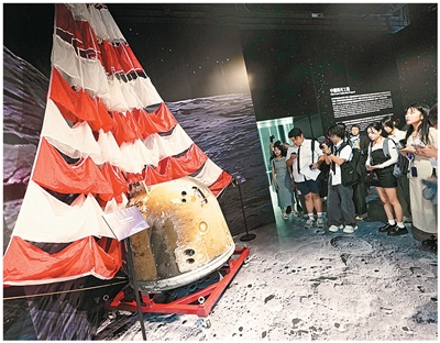 7月31日,由国家航天局与香港特别行政区政府联合主办的“无尽探索:中国的航天、航空及航海”展览在香港科学馆开幕。图为展出的嫦娥六号返回舱。