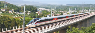 今年6月15日,全球最快高铁CR450AF在试跑中通过沪渝蓉高铁武汉至宜昌段龙泉河特大桥。