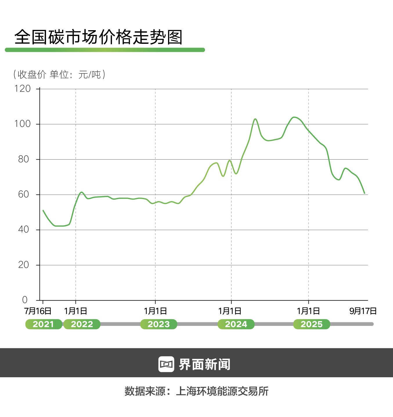 截至2024年底,碳市场累计成交量6.3亿吨,累计成交额430.33亿元。去年4月24日,全国碳市场收盘价为100.59元/吨,首次突破百元关口,较交易首日的开盘价48元/吨翻倍。之后最高收盘价达105.65元/吨。