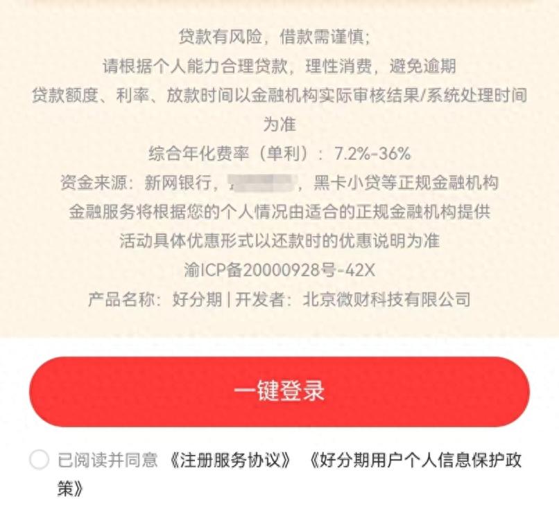 根据申请好分期借款时,用户需要签订的隐私政策协议,好分期平台运营方为微财科技。公司官网也显示,好分期是微财数科旗下专为年轻消费者及小微企业主打造的信贷信息及技术服务平台;最高额度20万元,签约到放款最快5分钟,20-65周岁非在校大学生凭有效身份信息都可以申请。