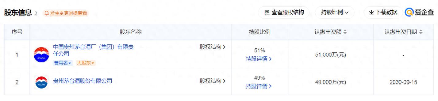 股东信息显示,该公司由中国贵州茅台酒厂 (集团) 有限责任公司、贵州茅台酒股份有限公司共同持股。