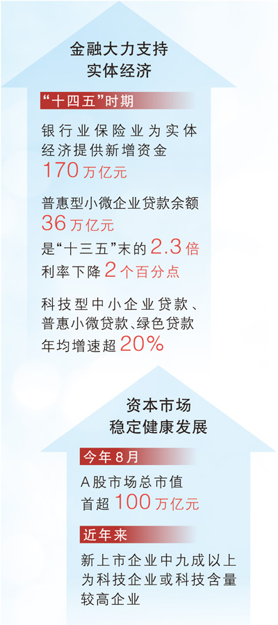 为实体经济服务是金融的天职。“十四五”时期,我国坚持支持性的货币政策立场,中国特色现代货币政策框架初步形成,实施和传导更为有效。金融部门做好金融“五篇大文章”,在绿色金融、普惠金融、数字金融等方面走在世界前列,支持国家重大战略、经济社会发展的重点领域和薄弱环节。