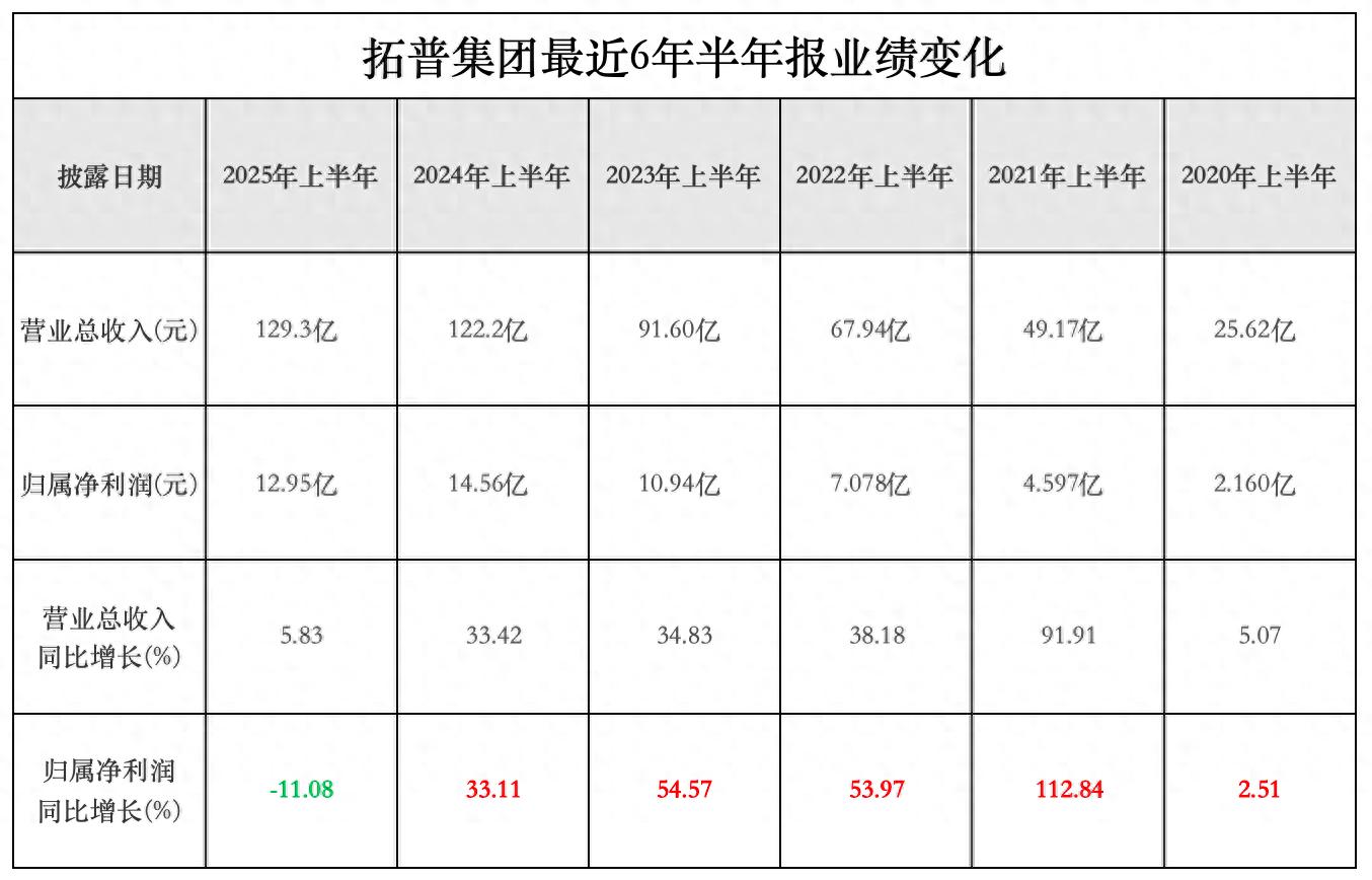 2025年上半年,拓普集团利润下滑。新京报贝壳财经记者 林子 制图