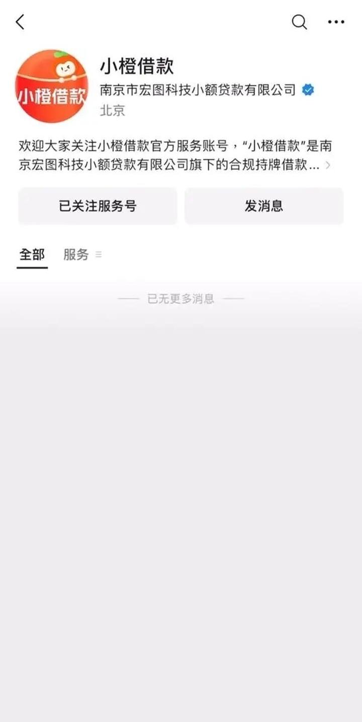记者在微信中搜索“小橙借款”时发现,该贷款产品的认证主体为一家名为南京市宏图科技小额贷款有限公司(本文称“宏图小贷”)的企业。