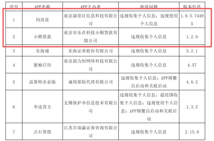 近日,江苏省通信管理局发布《关于侵害用户权益行为的APP通报》,其中两款贷款APP被通报,分别为“闪用花”和“小橙借款”。
