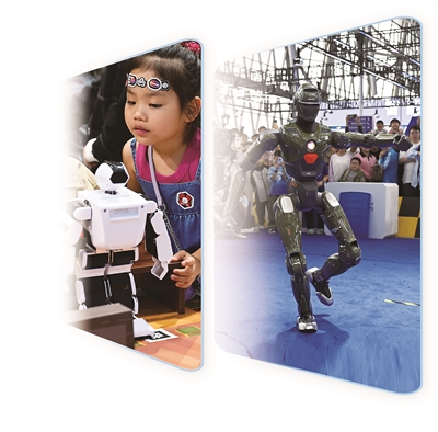 右图 人形机器人在2025世界制造业大会上为观众表演舞蹈。