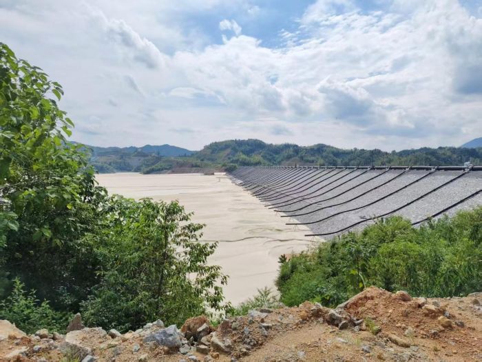 没有选矿,也就没有尾矿。9月12日,记者在尾矿库区看到,宁德时代在此筑起几十米高的大坝,大坝内侧一排黑色排送管道没有物体流出。