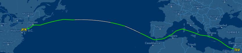 △flightaware记录的本次内塔尼亚胡专机航程航迹